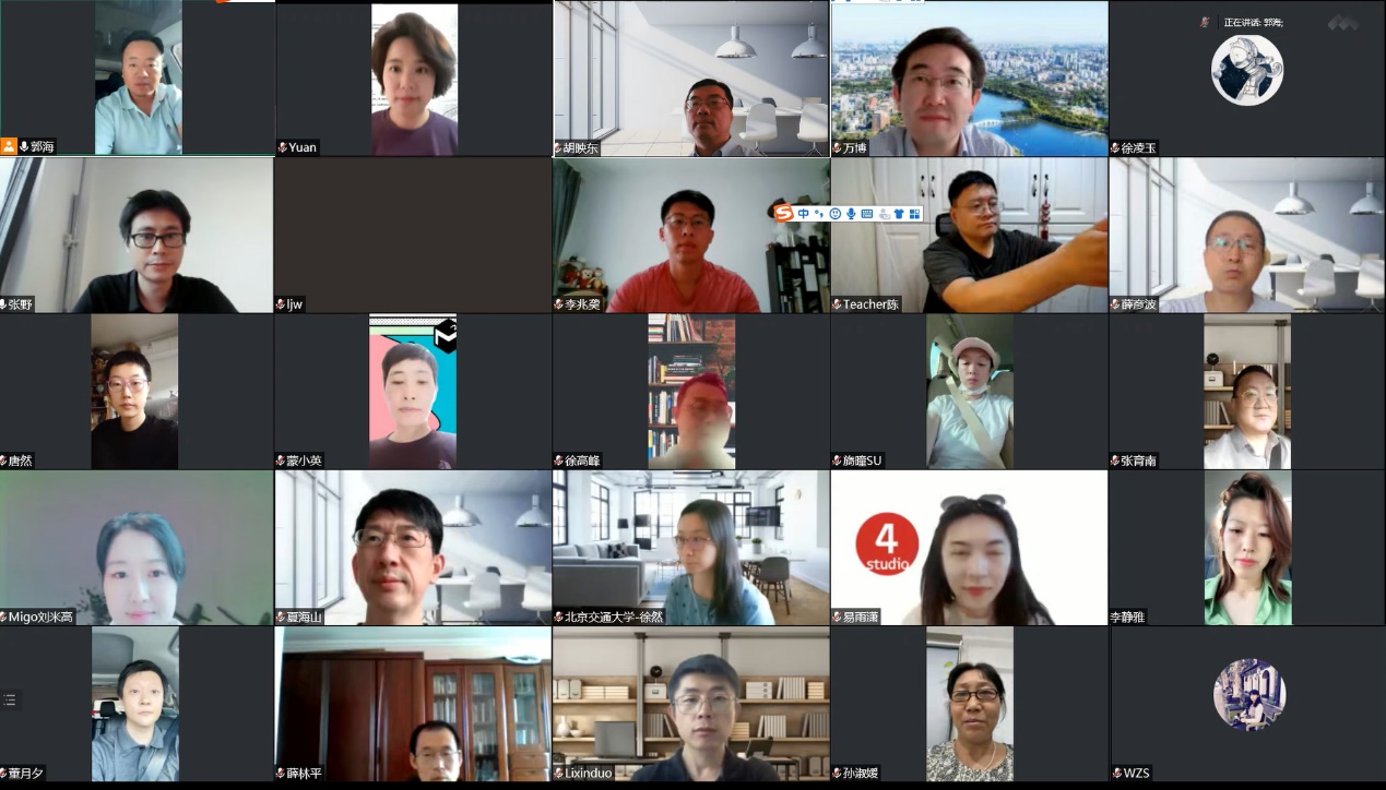 在随后召开的全体工作室任课教师在线培训上,胡映东老师解读今年课程环节和要求,着重介绍工作室团队及导师需完成的三个规定模块教学内容和组织实施流程。张野老师为49名工作室导师进行课前培训,题目《如何构建和谐的导学关系与高效团队》。