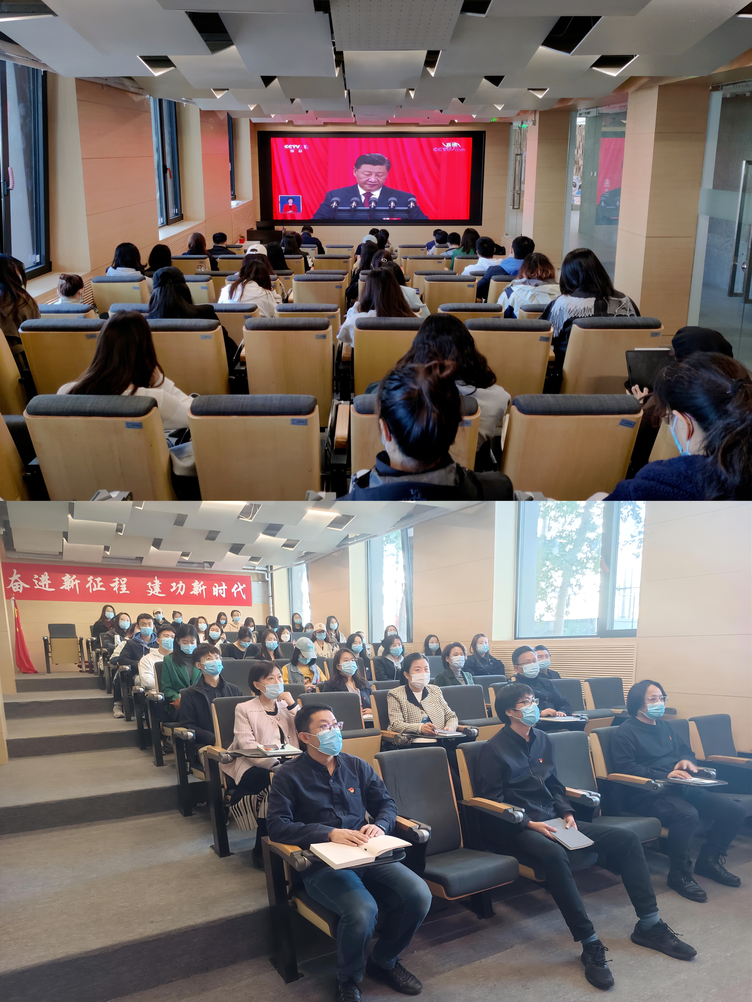 喜庆二十大,奋进新征程。10月16日,中国共产党第二十次全国代表大会在北京隆重召开。上午10时,cq9电子游戏试玩网站 全院师生以高昂的精神风貌和饱满的热情,通过各种形式收听收看二十大开幕会盛况,第一时间学习领会大会精神。cq9试玩 党委委员、各支部书记、师生党员代表在cq9试玩 一层报告厅集中收看大会报告,全体本科生团支部在专业教室组织收看大会报告,各系教师线上收看大会报告。