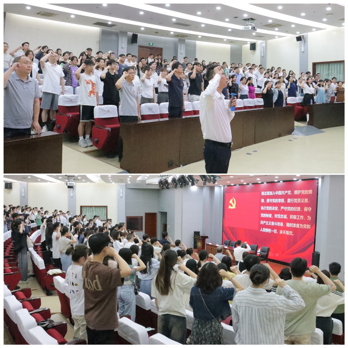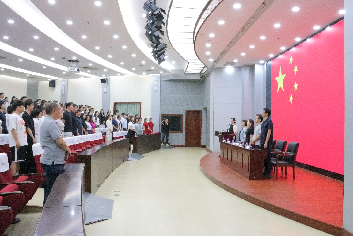 最后,全体党员面向党旗进行集体宣誓,铭记誓言,坚定信念,勇往直前。“首都市民学习之星”建筑系教师党支部书记郭华瞻领誓。大会在全体党员的铮铮誓言声中落下帷幕。全院各党支部和全体共产党员将以受表彰的集体和个人为榜样,在实现中华民族伟大复兴的壮丽征程中,牢记初心使命,矢志勇毅前行,勇于担当,主动作为,再立新功,再创佳绩!