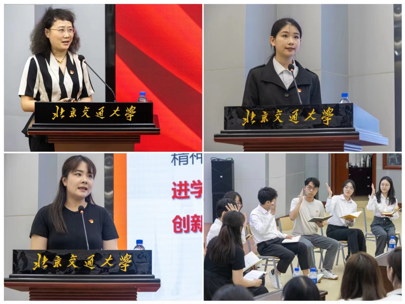 会上,获奖代表进行了交流发言。优秀教师党员代表——建筑系副主任李珺杰从教书育人责任、服务社会责任和科技创新责任三个方面分享了教师党员的责任与担当。优秀学生党员代表——本科生第二党支部副书记王曦卉结合自己两年军旅生活、担任党支部委员和刻苦求学的经历阐述了学生党员如何发挥先锋模范作用。先进党支部代表——北京交通大学研究生样板党支部2202班硕士生党支部书记胡蝶介绍了支部的建设经验,支部党员以情景剧表演的方式展示了党支部工作的日常。