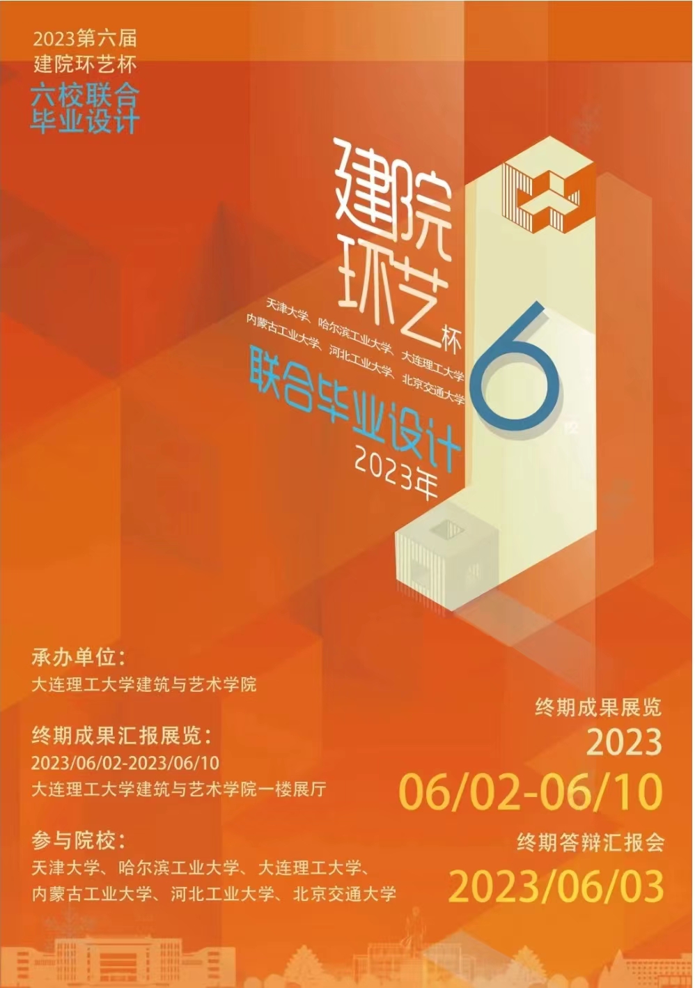 2023年6月3日,来自哈尔滨工业大学、天津大学、大连理工大学、北京交通大学、河北工业大学、内蒙古工业大学的六校师生齐聚大连理工大学cq9电子游戏试玩网站 ,参加第六届“建院环艺”杯六校联合毕设的终期答辩汇报会,cq9试玩 张野副院长和魏泽崧老师参加了本次联合答辩终期汇报活动,今年是本次活动举办的第六届,也是cq9试玩 环境设计首次作为兄弟院校参加本次联合毕设活动。
