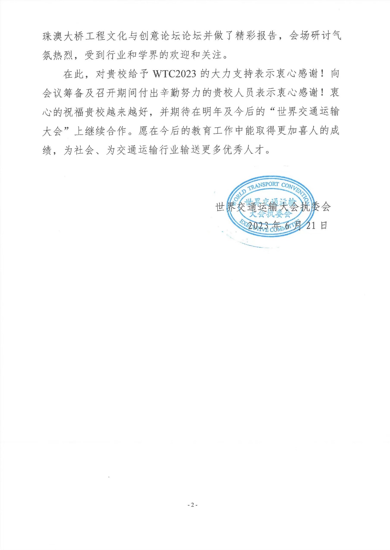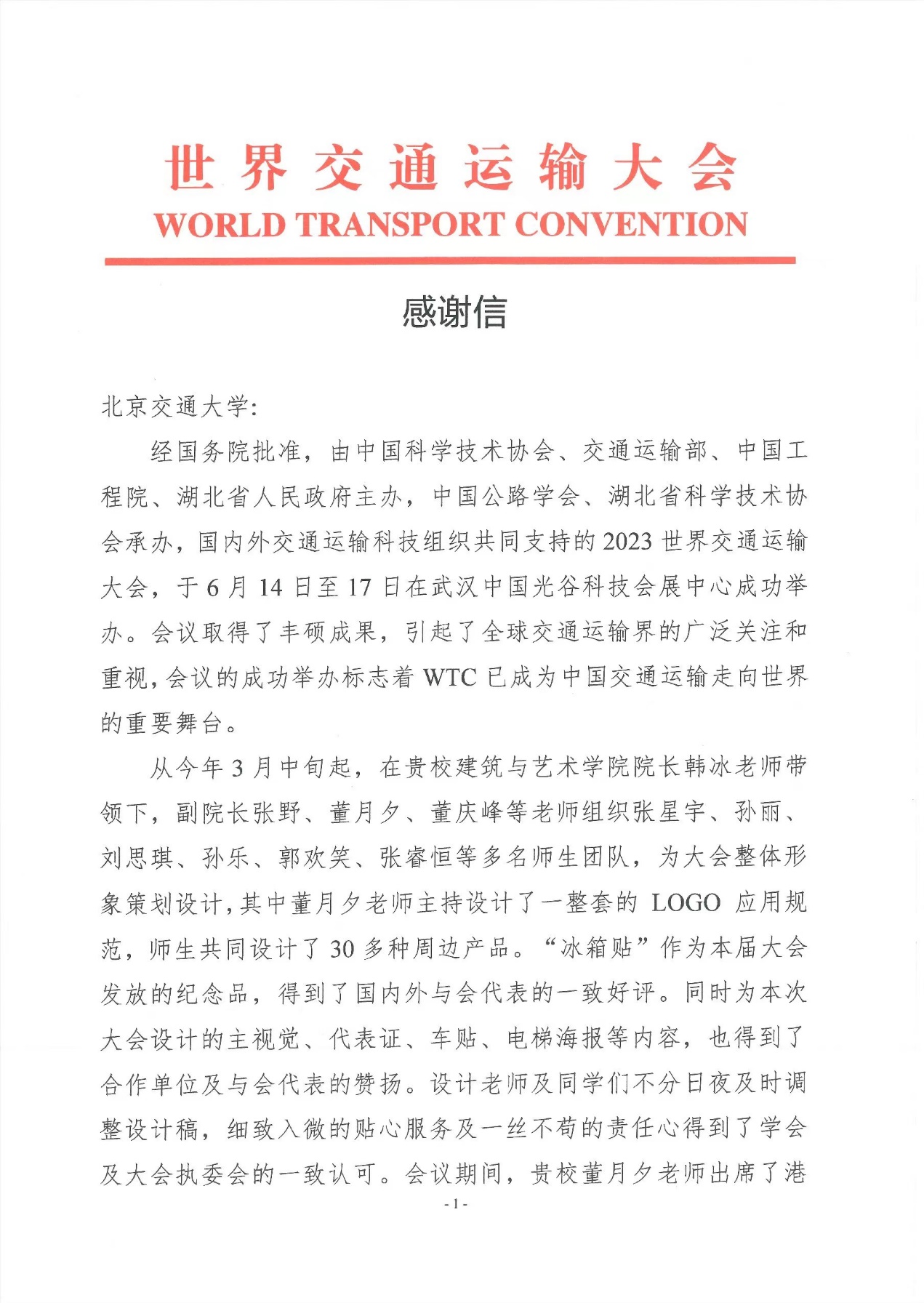 近期,学校收到来自世界交通运输大会执委会、北京市房山区委区政府的感谢信,对cq9电子游戏试玩网站