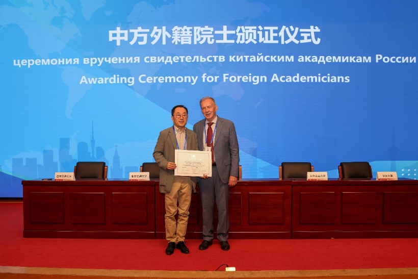 联盟签约仪式后,俄罗斯建筑与建设科cq9试玩 副主席叶萨乌洛夫院士为韩林飞教授颁发了院士证书,韩林飞教授发表了当选感言。
