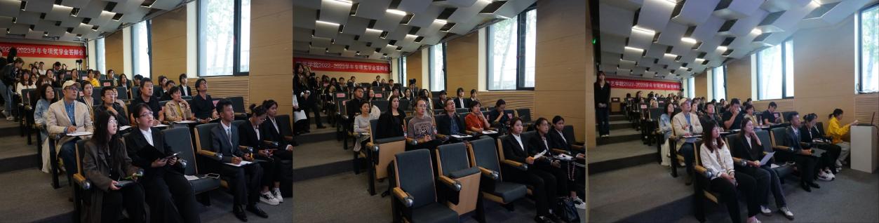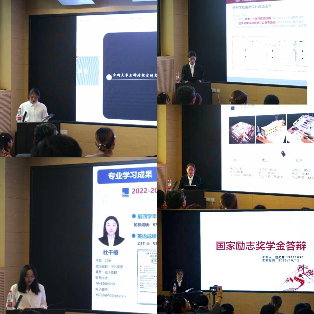 10月11日、10月12日,cq9电子游戏试玩网站 在建艺楼一层报告厅分别举行2022-2023学年国家奖学金和智瑾专项奖学金、国家励志奖学金展示会。cq9试玩 党委副书记刘萍,副院长张野,建筑系主任盛强、副主任曾忠忠,城乡规划系主任王鑫、副主任张纯,设计系主任王征、副主任杨梦婉,教学科科长彭烜,学生工作组全体人员,2023级学生代表担任答辩会评委。