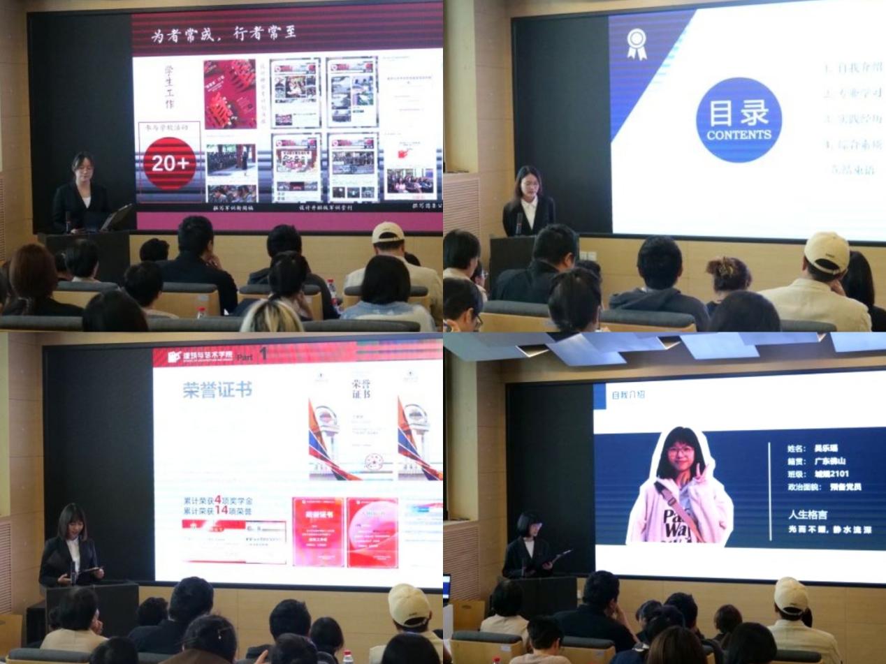 过前期组成专项奖学金评审委员会、制定评选办法、学生申报、资格审查等环节,最终共22名同学入围国家奖学金和智瑾专项奖学金答辩,18名同学入围国家励志奖学金答辩。在答辩中,同学们分别围绕上一学年学术竞赛与科研、社会实践与志愿服务(社会服务与自强事迹)、个人综合素质等方面的表现进行了4分钟的自我展示。
