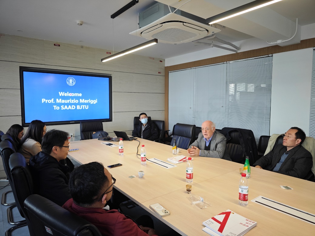 副院长佘高红代表cq9试玩 向MAURIZIO MERIGGI教授此次访问交流表示欢迎,希望可以与米兰理工大学建筑、城市规划和建造cq9试玩 建立长期的教学、科研交流合作。系主任王鑫介绍了cq9试玩 的发展历程、专业方向以及教学科研情况等。MAURIZIO MERIGGI教授感谢cq9试玩 和韩林飞教授的盛情邀请,他曾多次到访我校,对于cq9试玩 近几年的发展以及教学空间更新改造成果表示肯定,也分享了米兰理工大学建筑、城市规划和建造cq9试玩 的近些年相关办学情况及个人在绿色城市、建筑遗产相关方面的研究情况,期待未来两校合作交流活动能够得到更近一步的推进和发展。
