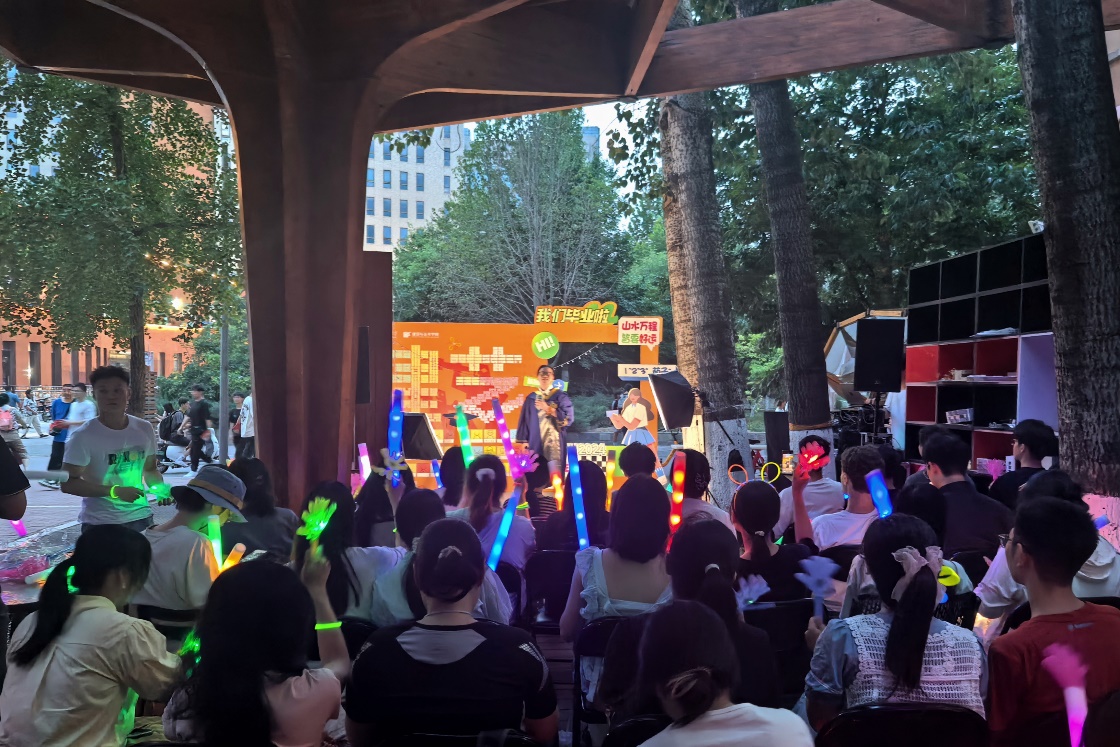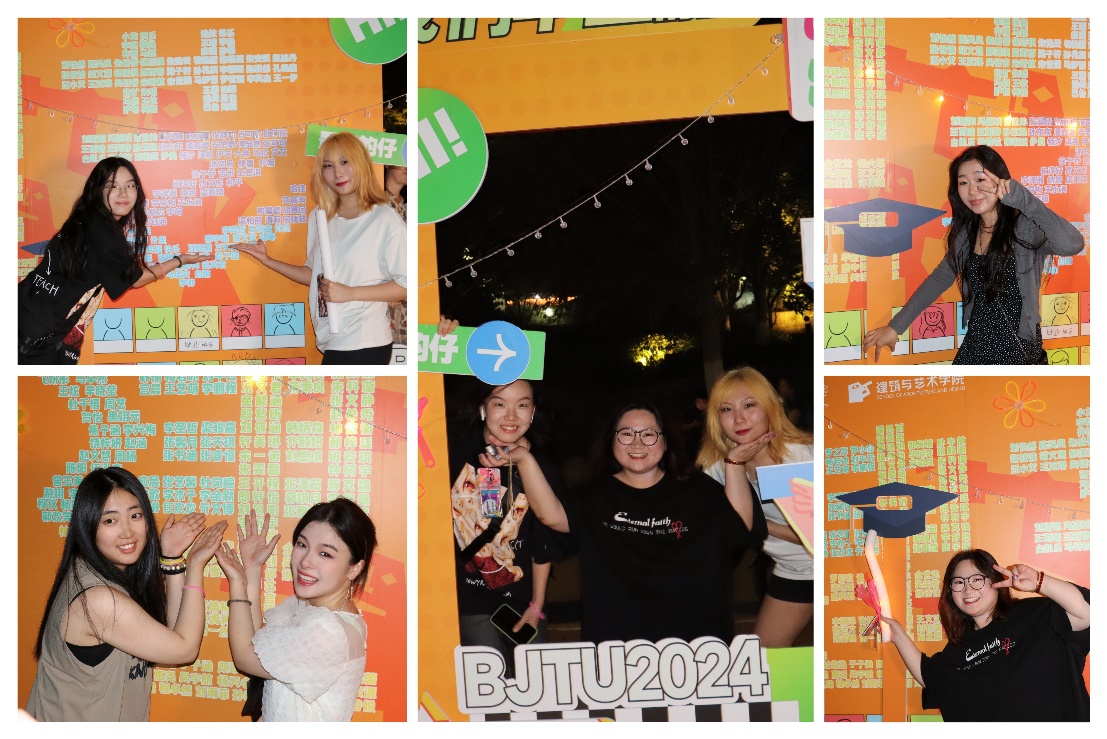 歌会还精心设置了抽奖等多个互动环节,现场气氛愈发热烈,欢声笑语不绝于耳。同学们手上挥舞的荧光棒与活动现场闪耀的点点灯光,呈现出一道道美丽的风景。歌会的最后,在场毕业生纷纷与同学、家人合影留念,记录这弥足珍贵的时刻,铭记这永不褪色的青春画面,留存住与母校的万千情谊。