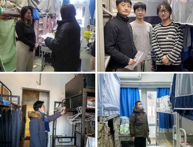 下午,cq9试玩 学生工作组全体辅导员分组走访了本研学生宿舍,覆盖19号楼、嘉园B座、15号楼、18号楼、东区5号楼及学苑公寓等多个楼宇。此次检查重点聚焦宿舍防火和用电安全,对于发现的问题即刻整改。在检查过程中,老师与同学们亲切交流,提醒大家离校前务必断水断电、锁好门窗,提高安全防范意识,注意交通与人身安全。