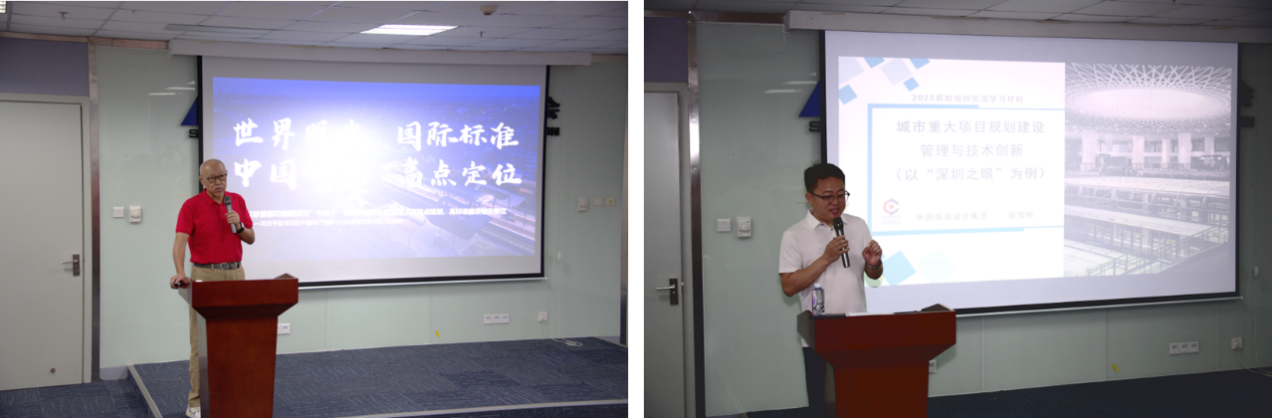 6月30日上午,工作坊一行在深圳市轨道交通协会张媛的组织下前往 NOCC 大厦。赵鹏林会长围绕《从深圳到雄安—轨道交通的创新发展》的主题,系统梳理“建地铁就是建城市”的TOD发展历程,让学生们认识到智慧技术对于未来城市空间的创新作用。中国铁路设计集团的郄雪刚总带来讲座《城市重大项目建设的管理与技术创新—以深圳之眼为例》,解读深圳制度和创新氛围的优越性及其带来的启迪,让同学们对深圳的创新发展有了更为深入的理解。