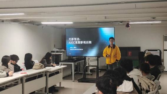 鼎盛佳和公司校企合作总监联合经理刘依凡围绕“影视行业AI技术应用与职业发展指导”主题进行了系统分享。详细介绍了企业发展历程、业务布局及核心技术优势,并结合热播剧的后期制作案例,分享了影视后期全流程制作的技术实践与创新经验。同学们积极交流互动,围绕AI时代浪潮下影视后期行业的发展趋势、人才能力培养、专业学习与实践融合等议题展开了深入讨论。