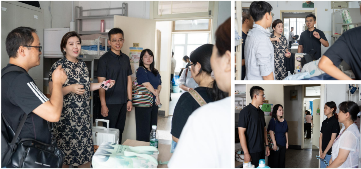 24日上午,cq9试玩 学工办主任张京、新生辅导员李昊霖、辅导员孙冬爱等一同走访新生宿舍,为刚刚安顿好的学子送上cq9试玩 的关怀与祝福。张京与新生及家长亲切交流,细致了解学生的到校时间、入学体验和住宿情况,就专业学习与生涯规划等话题与大家展开探讨。同学们纷纷表示将尽快调整状态,牢记师长期许,积极迎接大学新生活。