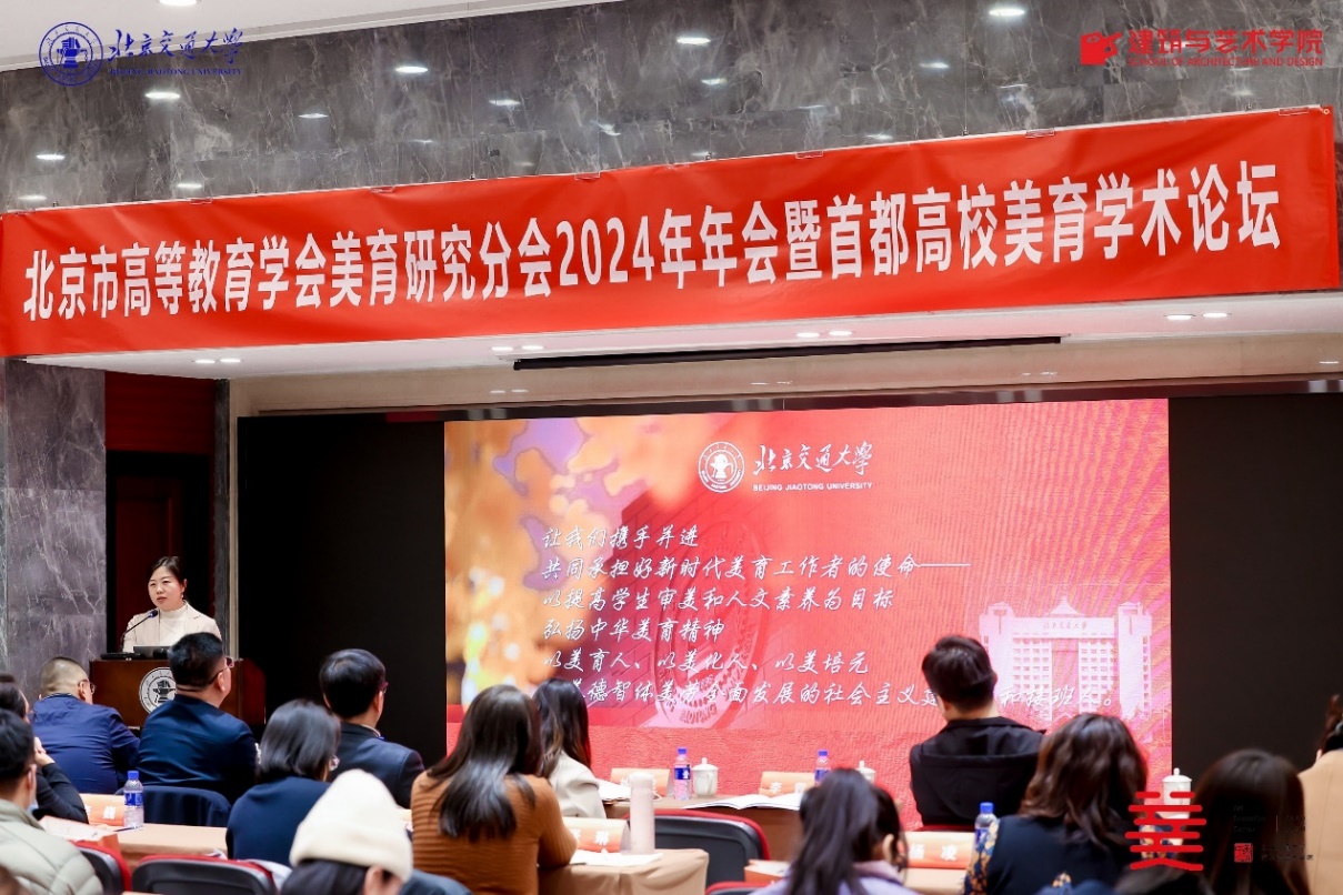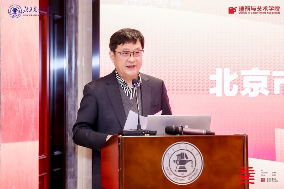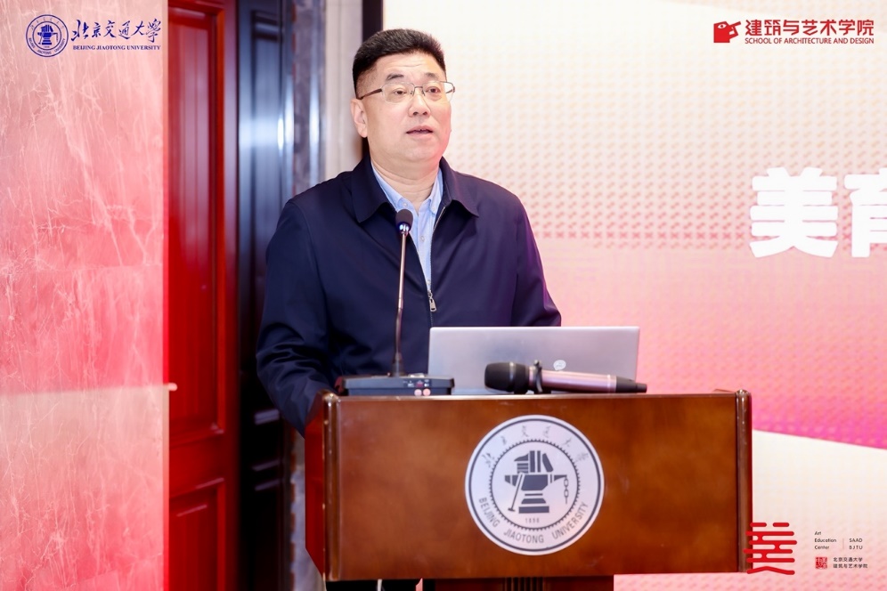 北京交通大学党委副书记姚念龙致辞,向与会领导和各高校教师的到来表示热烈的欢迎,向北京市高等教育学会、美育研究分会长期以来对我校工作的指导和支持表示衷心的感谢!同时,介绍了我校美育工作的开展情况,指出了我校美育工作未来的建设思路。