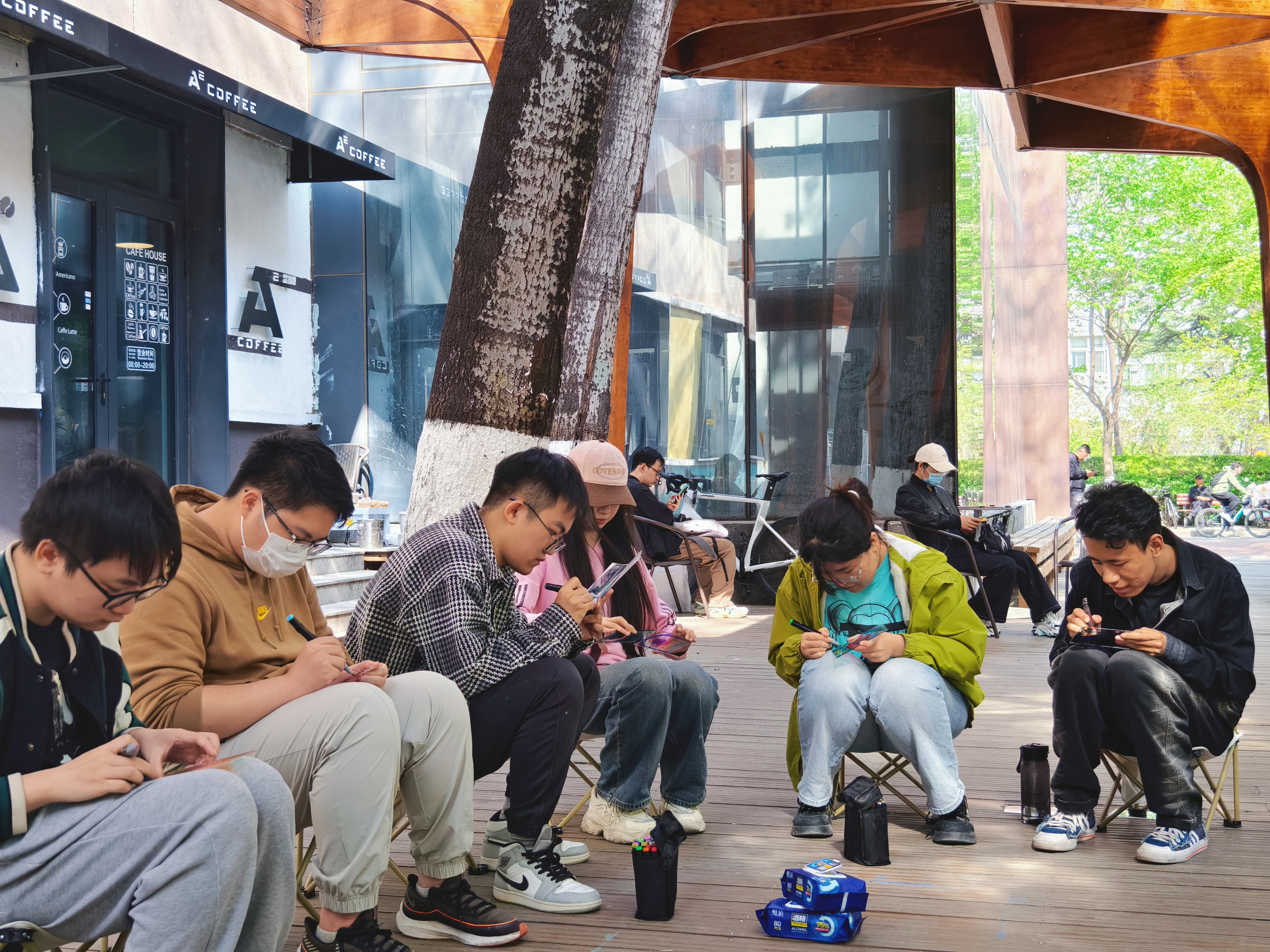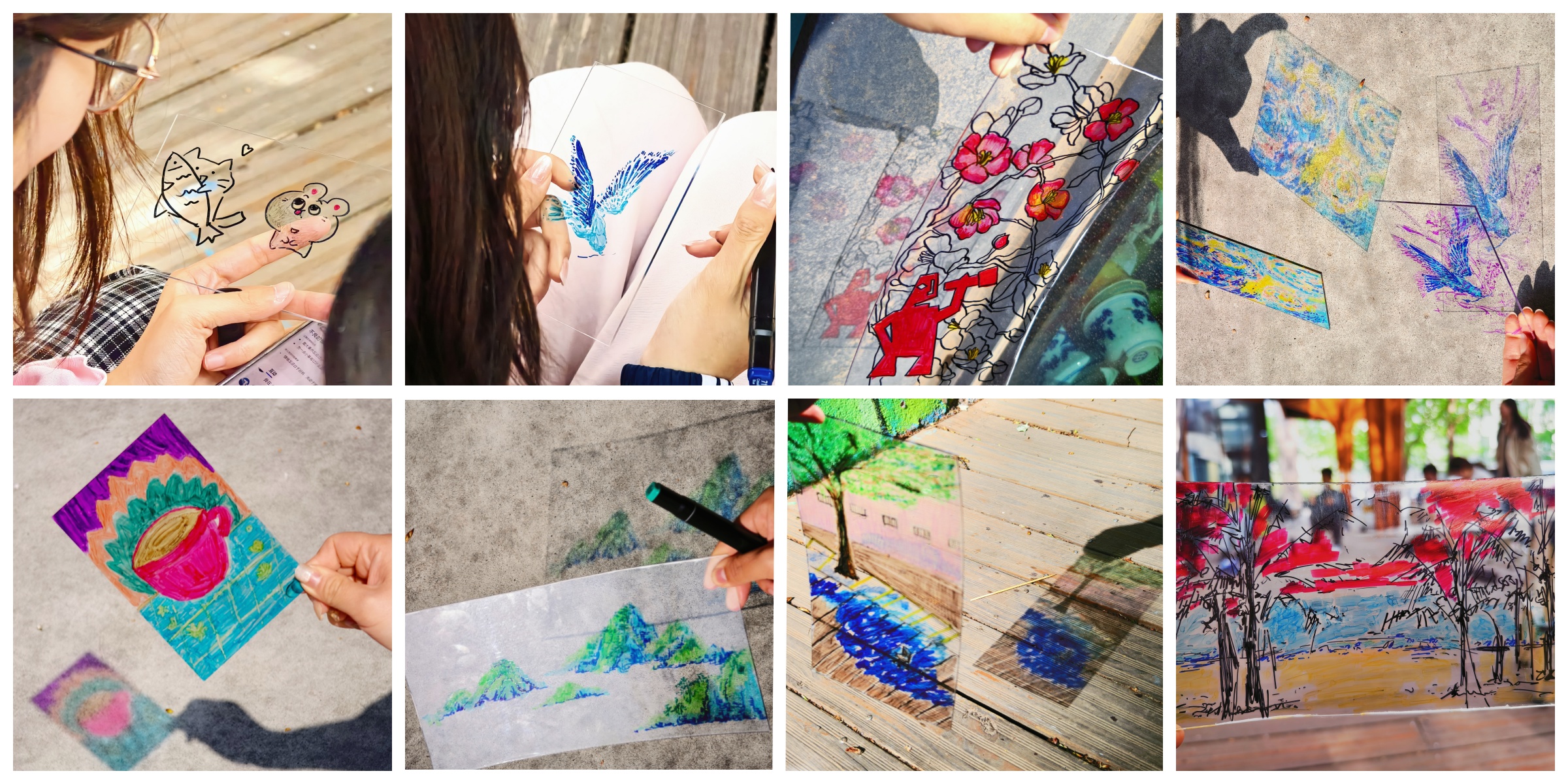 本次活动的创作形式为彩色玻璃画,cq9电子游戏试玩网站 学工办主任张京带领参与者专注于自身的情绪,回想曾经感受到压力的时刻,并思考通过何种方式能够缓解内心的压力。接下来,朋辈导师引导参与者将缓解压力的方法画出来,并将情绪转化为颜色,在透明的玻璃上精心勾勒轮廓、填充色彩。坐在伞亭内,享受着微风,让大家更加沉浸在艺术创作的宁静与美好之中,分享作品创作和自己调节压力的方法。创作完成后,师生们手持玻璃画作品移步至阳光下,光线穿过化作,五彩斑斓的色彩在地面上晕染开来,交织出如梦似幻的光影。